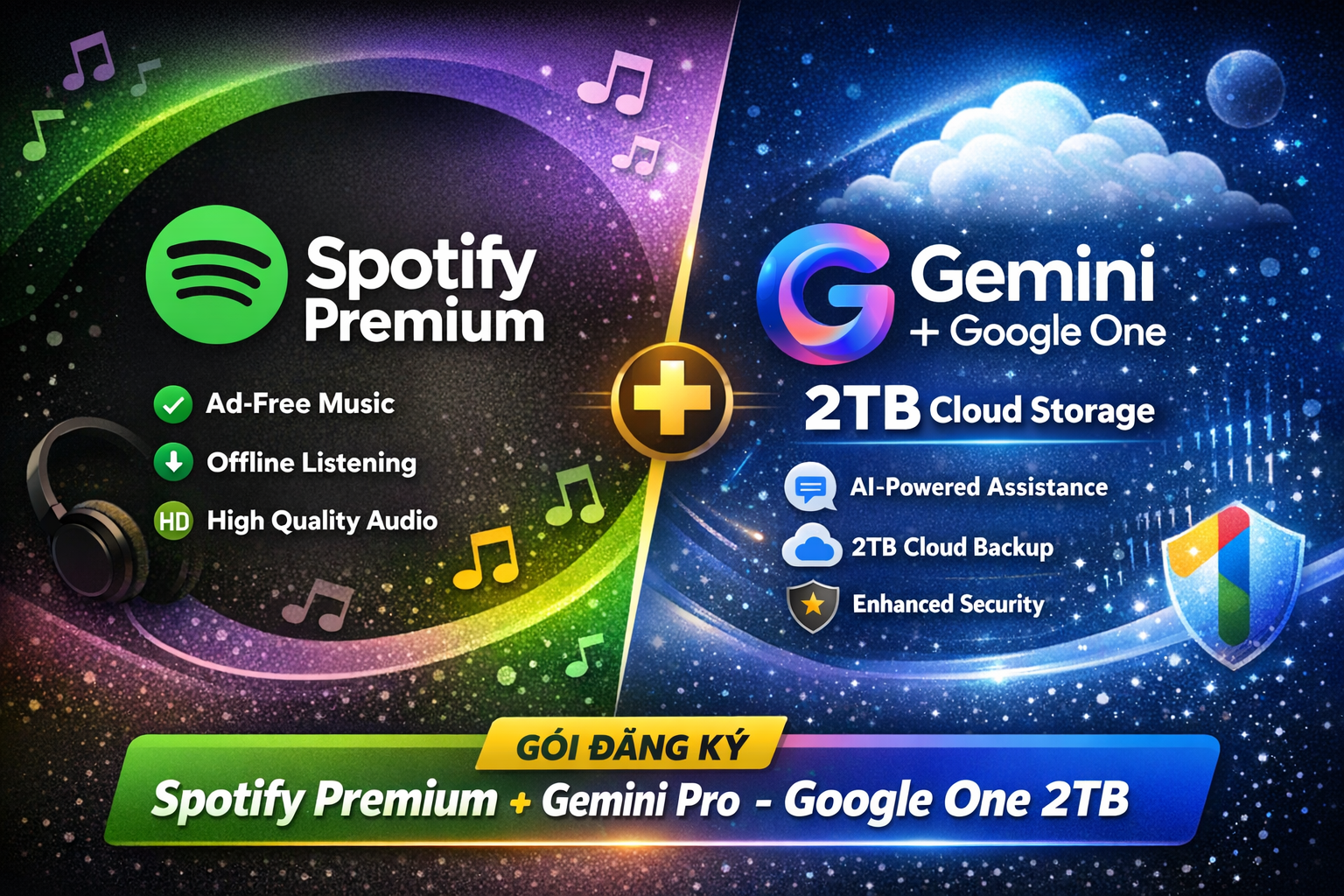 Spotify Premium + Gemini Pro - Google One 2TB ( 4 Tháng )